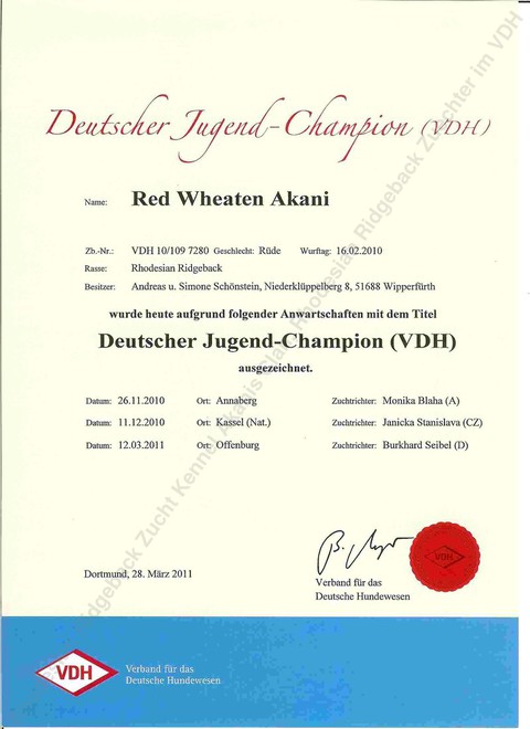 Red Wheaten Akani European Top Dog Competition Best Adult Male 3.Platz