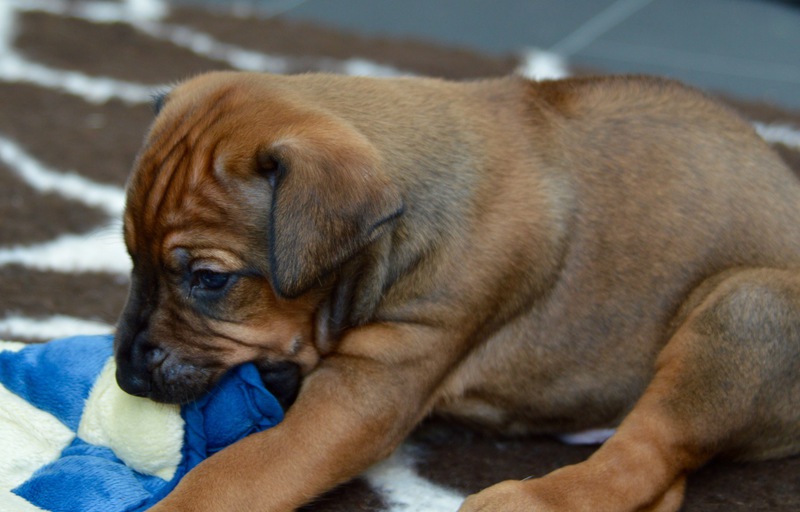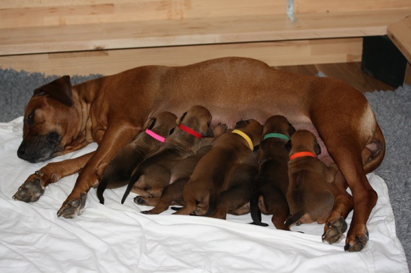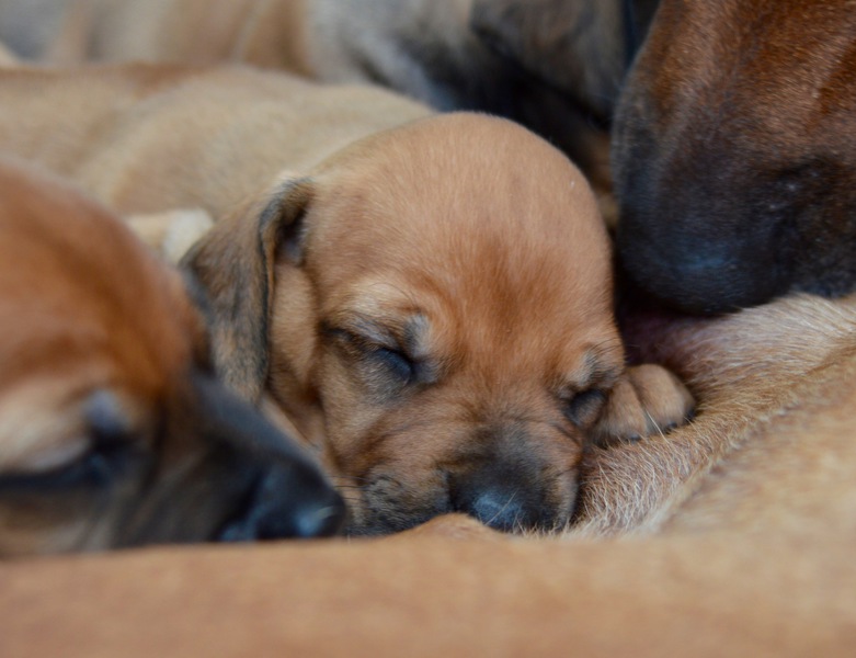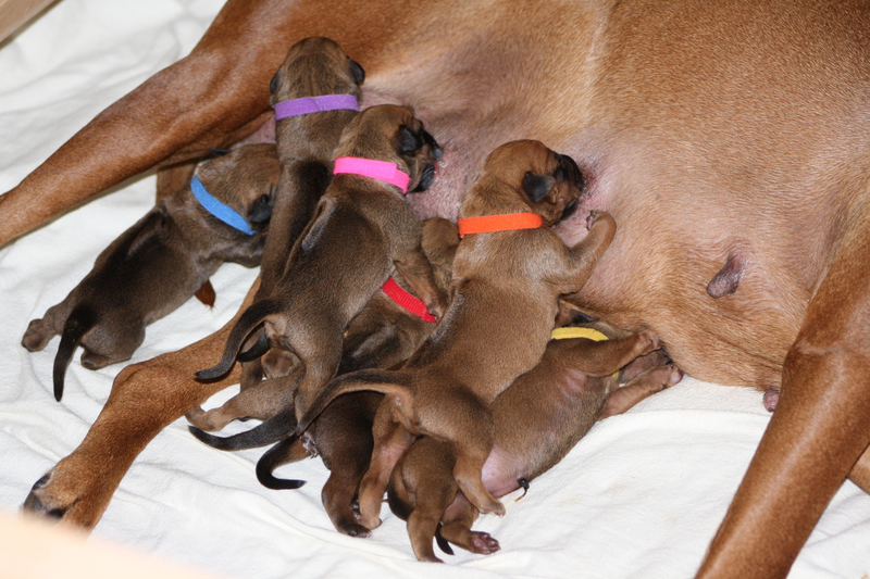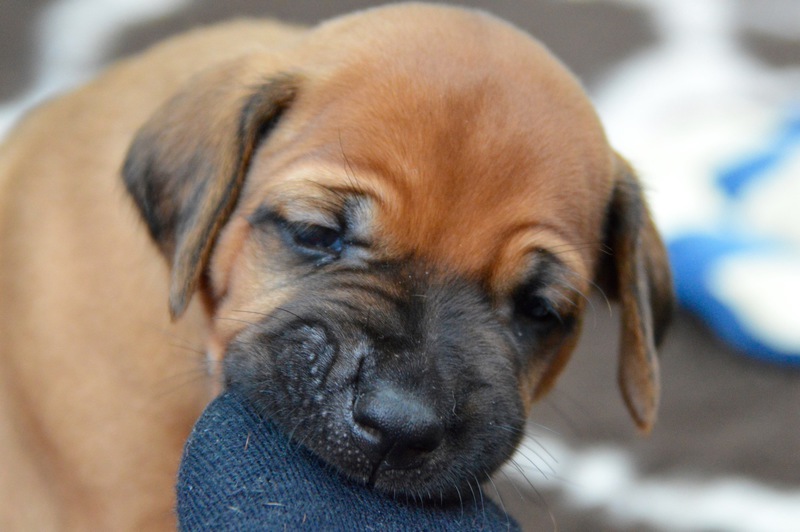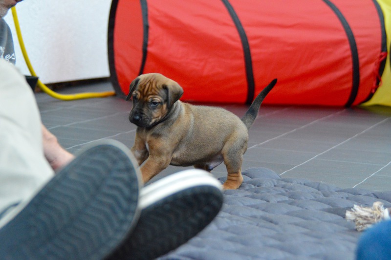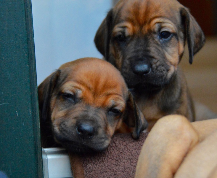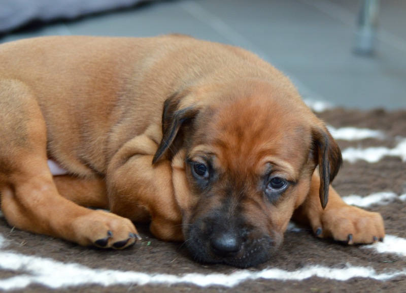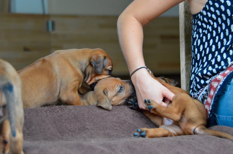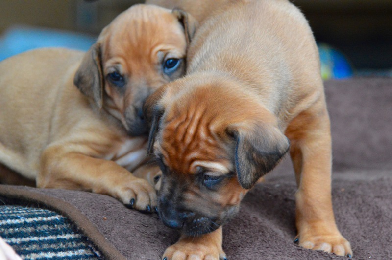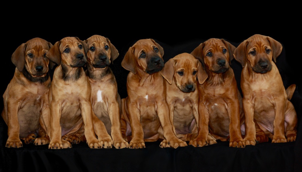 Hier sind die Kleinen Rhodesian Ridgeback Welpen vier Wochen alt.