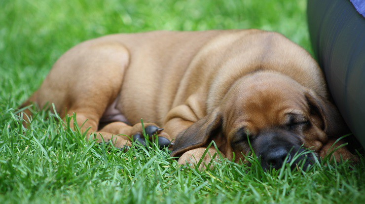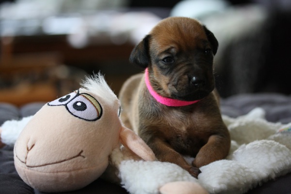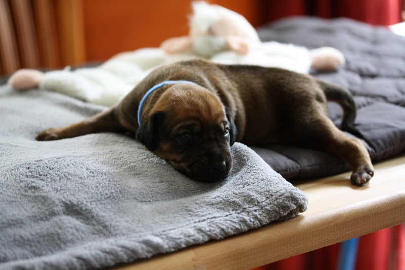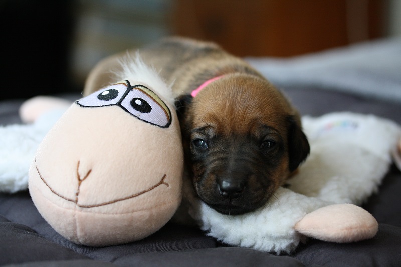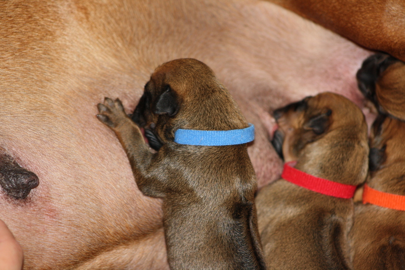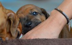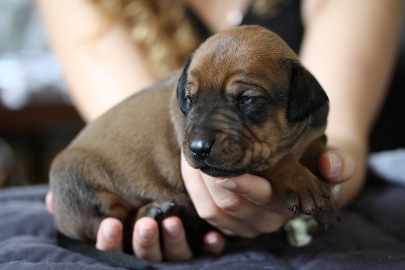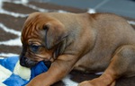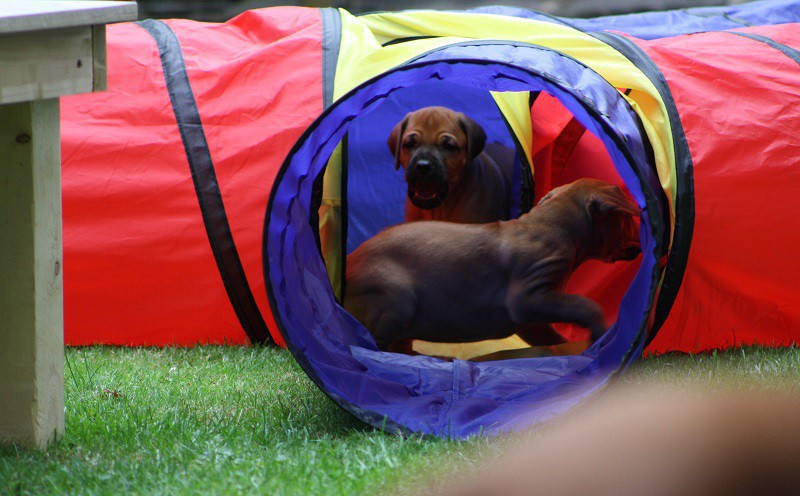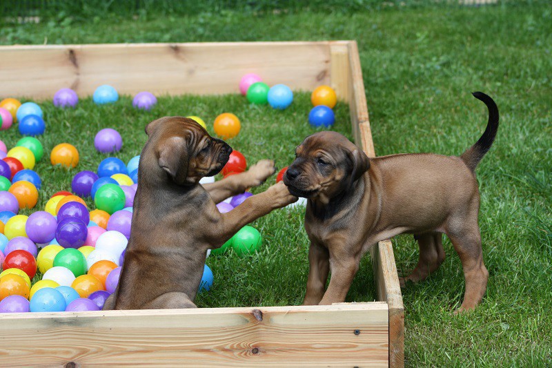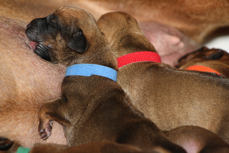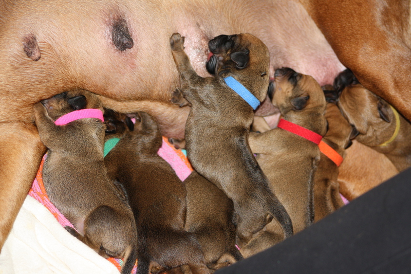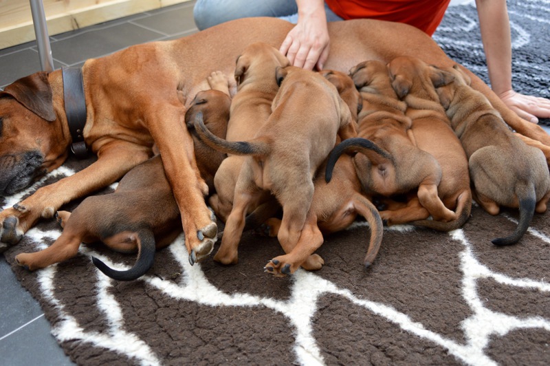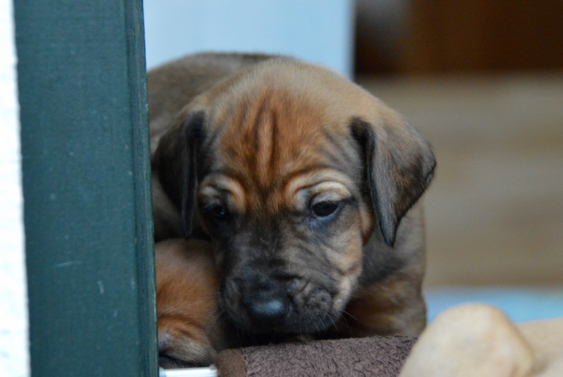 Hier sind die Kleinen Rhodesian Ridgeback Welpen vier Wochen alt.